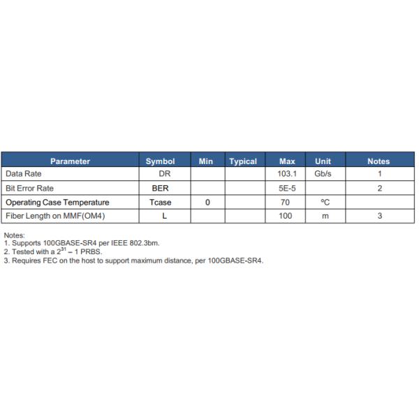 | MK1Q-85T3 | 100G QSFP28 850nm MPO 100m, 0°C~+70°C | |||||||||||||||||||||